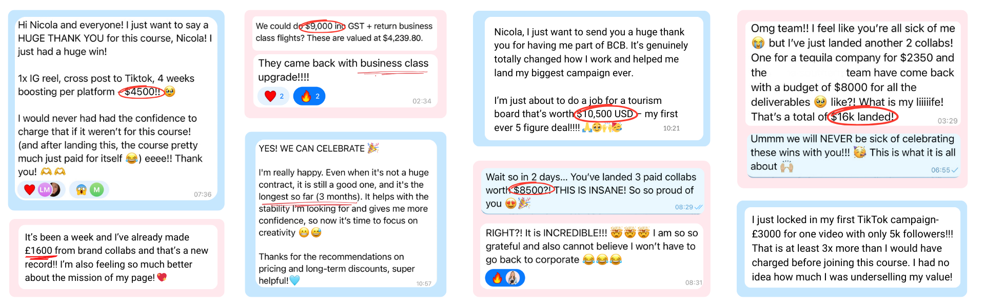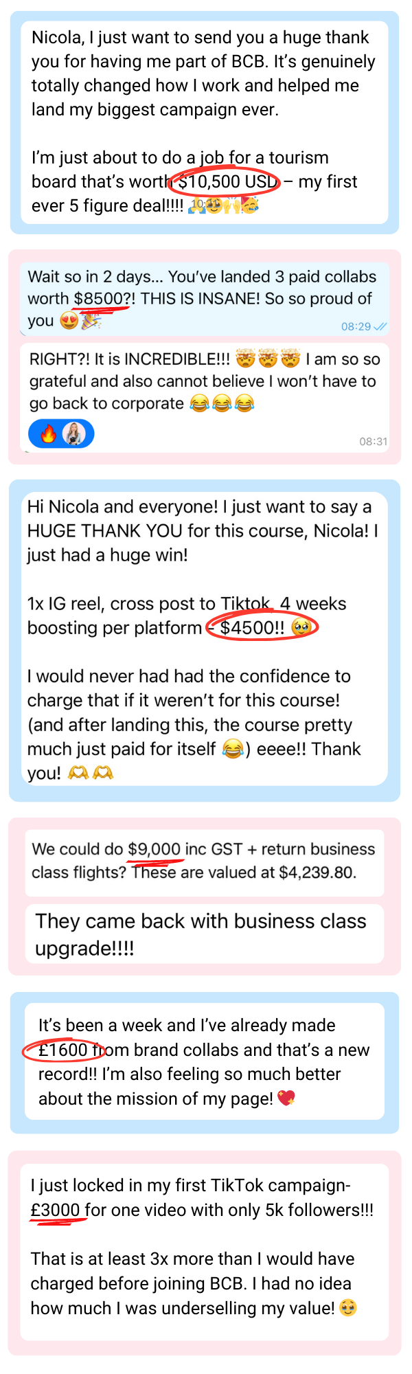 Nicola showed me exactly how to position my value to brands and the pay-off has been MASSIVE. I've now 3X’d my earnings & secured my biggest collabs to date!