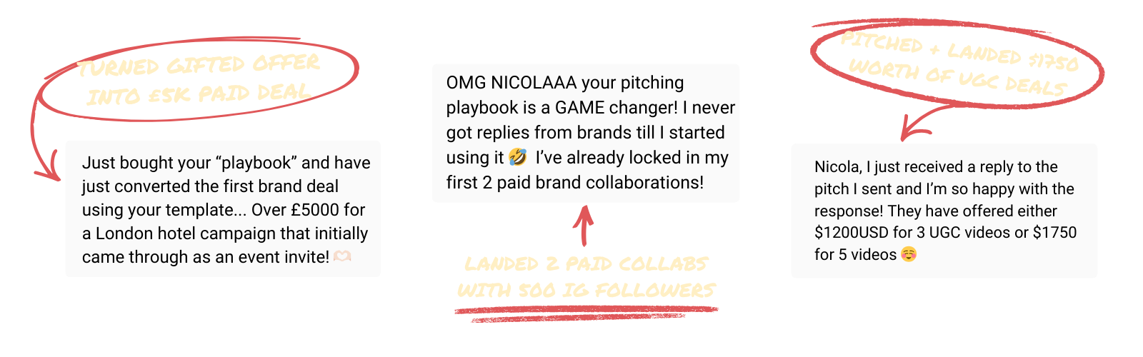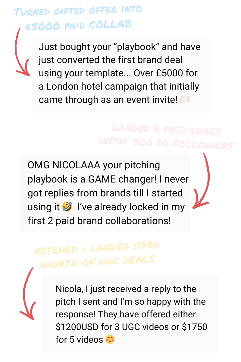 Within a week of using Nicola’s templates, I locked in my first 2 paid brand deals!”