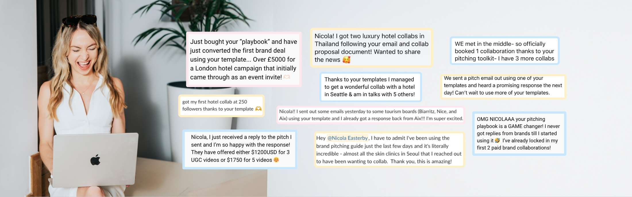 I switched to using Nicola's templates & in a matter of days I scored 2 luxury hotel collab!"